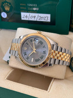 Pre-owned Rolex Datejust 126333 Wimbledon Dial Yellow Gold Steel Jubilee Strap Fluted Bezel 2023